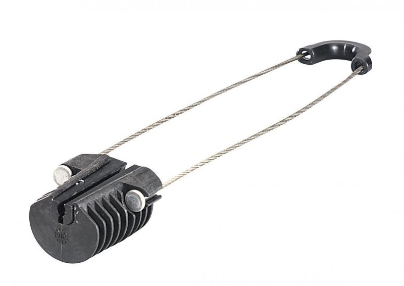 Зажим применяется для кабелей типа "8", для крепления за трос из алюминиевого сплава или диэлектрика.
