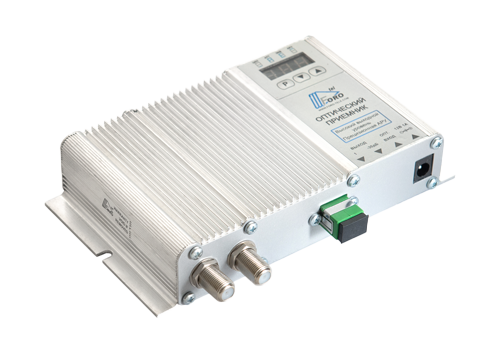 Приемник с высоким рабочим выходным уровнем 114 дБмкВ (наклон АЧХ 9дБ) с системой АРУ по оптической мощности, электронным управлением и низким энергопотреблением реализован в малогабаритном алюминиевом корпусе.