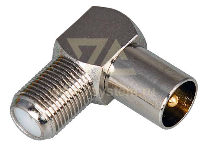 Отличительной особенностью переходника является угловая форма, позволяющая подсоединять провода исключая сильных перегибов в ограниченном пространстве. С одной стороны располагается гнездо F-разъема, а с другой штекер ТВ-разъема.